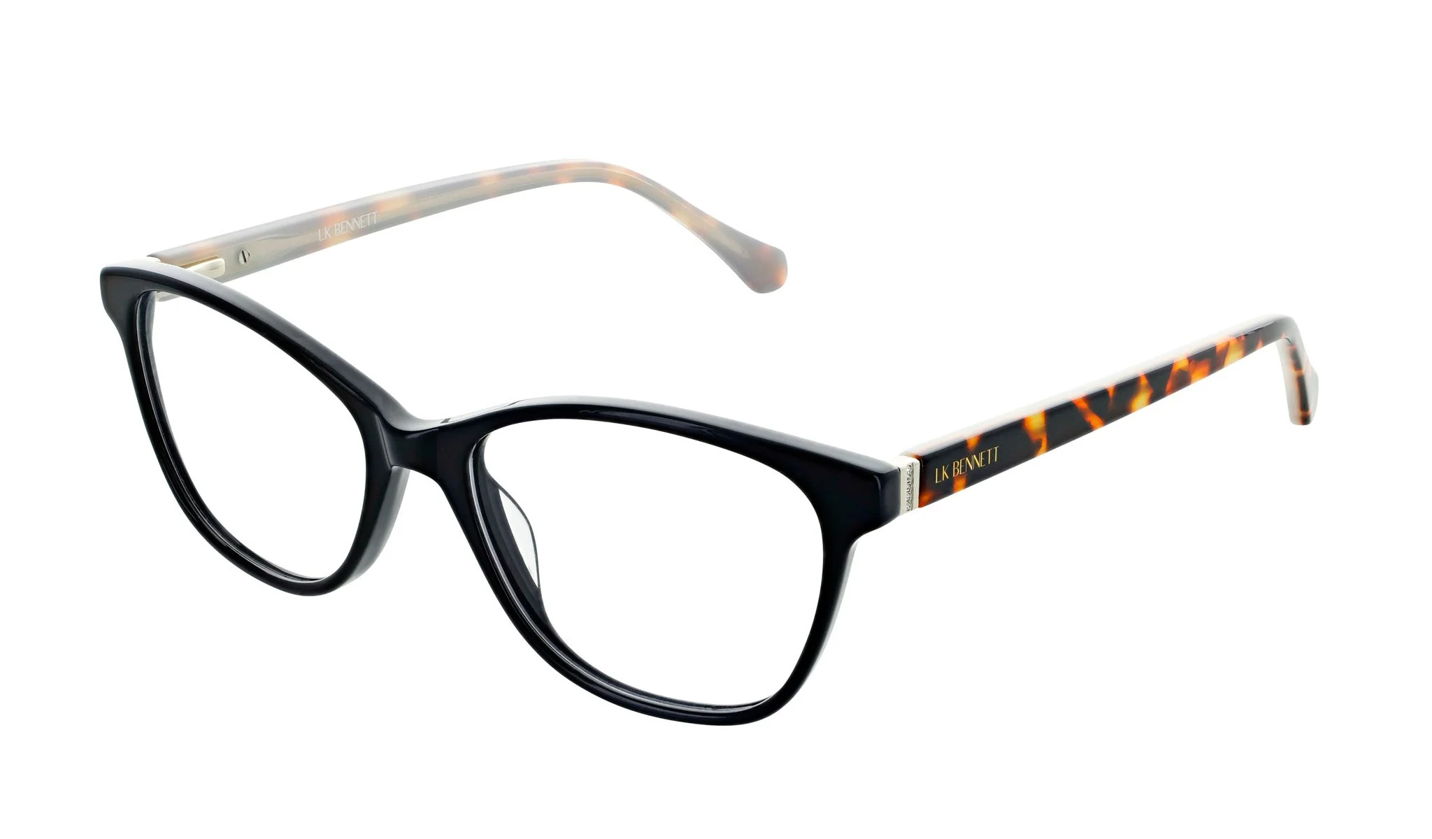 A quintessential frame style from LK Bennett. 81 showcases a chic, rounded front that's juxtaposed with the bold patterned temples ensuring an extremely stylish finish.