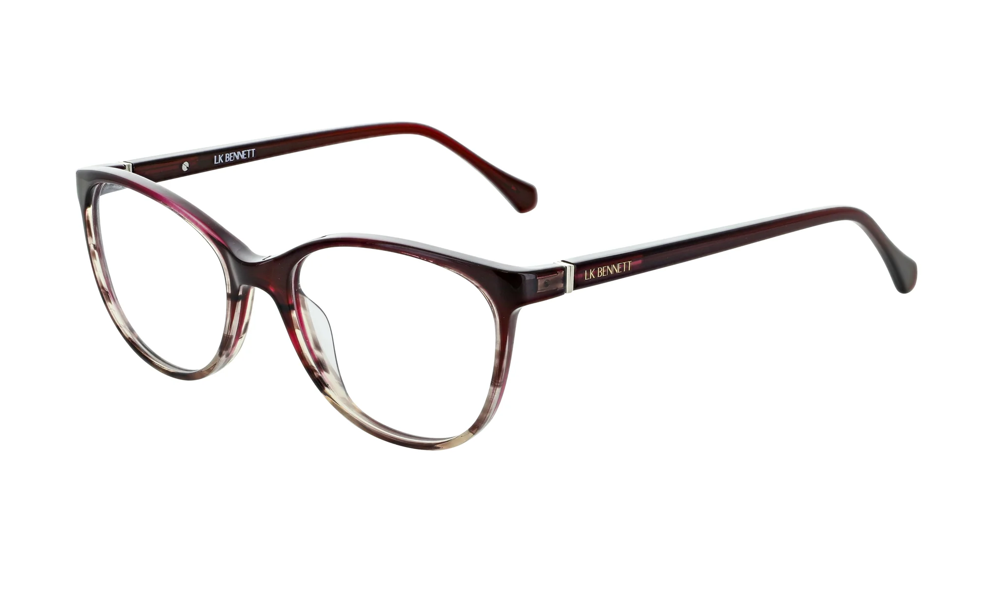 LK Bennett 82 offers gorgeous tort effect acetate fronts, metal detailing on the hinge and complementary temples with subtle branding.