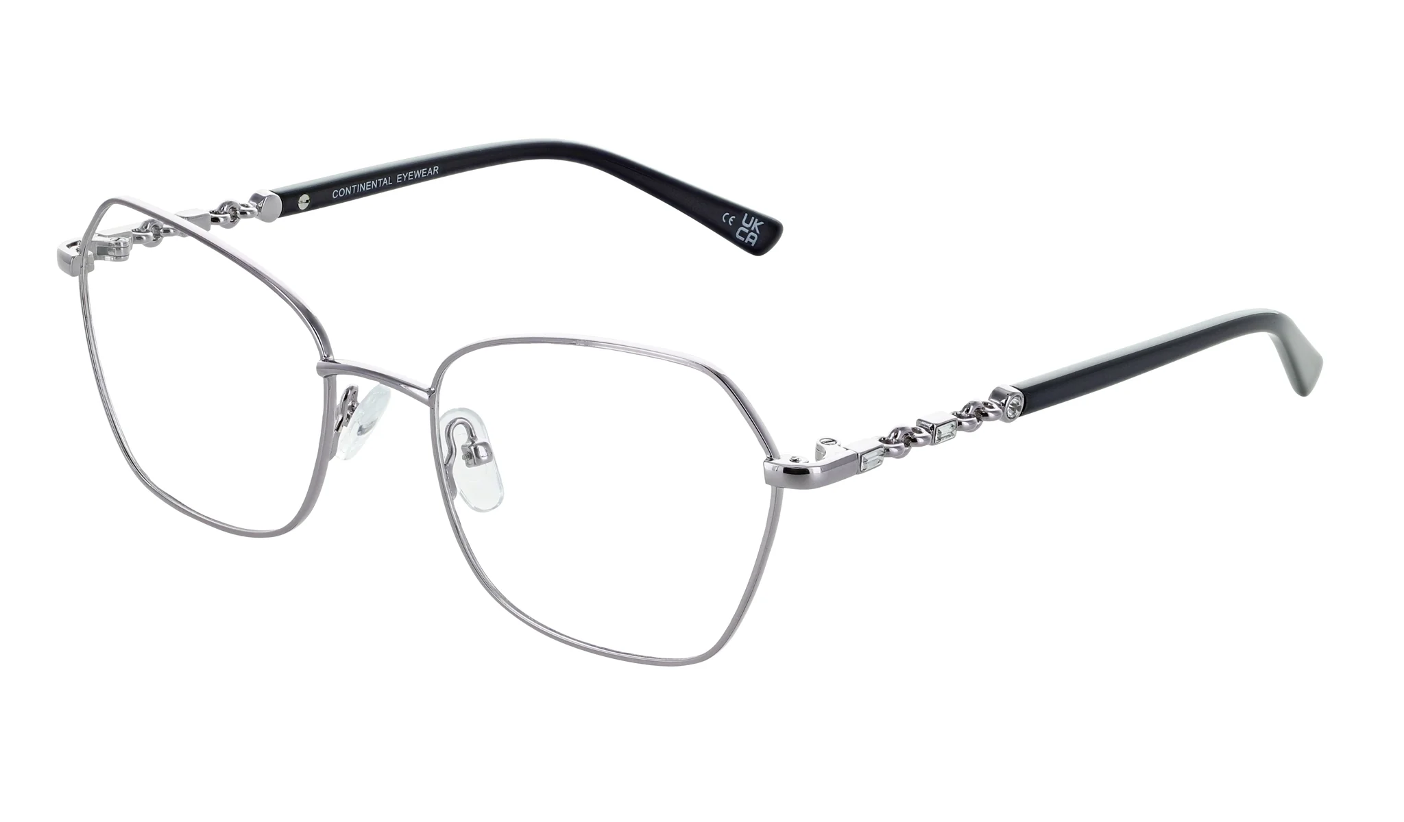 With its metal angular frame, bringing a touch of contemporary flair and its quirky chain detailing on the temples, bringing retro charm, this frame ensures a standout aesthetic.